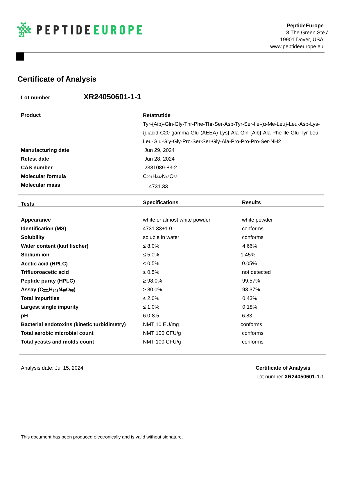 Zawartość substancji czynnej: 20 mg Retatrutide