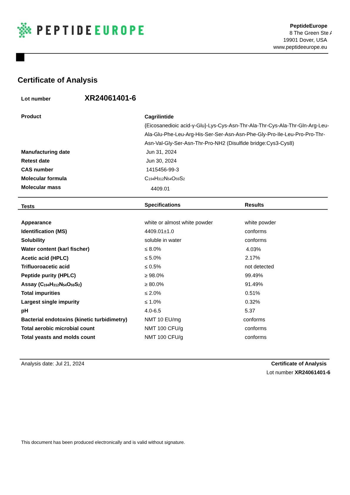 CARGIRETA 10mg nie jest suplementem diety ani produktem leczniczym. Klasyfikowany jako odczynnik chemiczny, dopuszczony do obrotu na terenie UE. Do stosowania wyłącznie przez wykwalifikowany personel w warunkach laboratoryjnych.